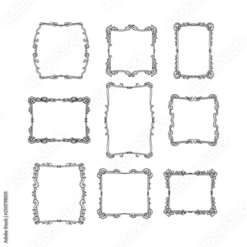 Vintage decorative hand-drawn frames set. black and white isolated vector illustration