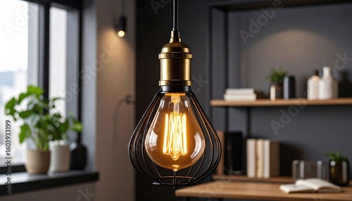 Vintage Edison Bulb Glowing in a Minimalist Industrial Lamp