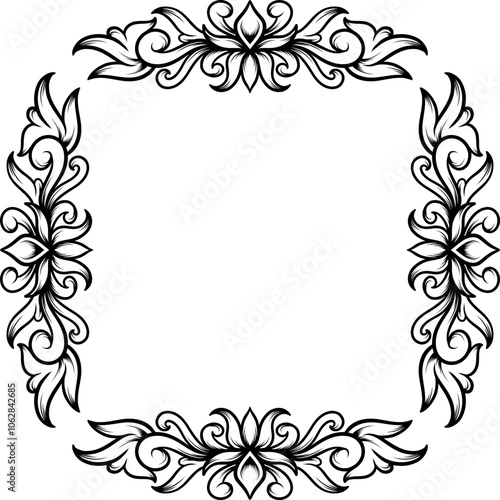 vintage elegant frame with a floral ornament engraving retro flower pattern antique style swirl decorative design element black and white filigree vector wedding invitation greeting card