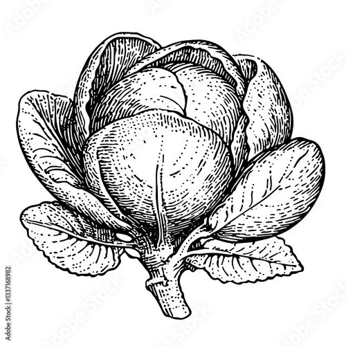 Vintage engraved illustration of a beautiful flower with intricate details and hand-drawn artistry, showcasing nature's elegance in black and white