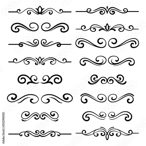 Vintage Flourish Divider Ornaments, Hand Drawn Swirl Line Art Elements, Decorative Border Vector Set