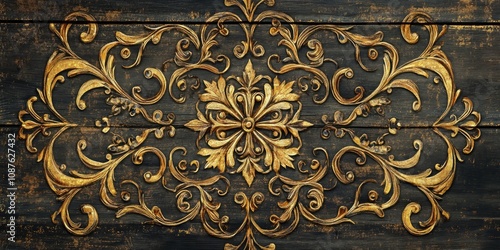 Vintage gold pattern wooden background featuring intricate designs. This old gold pattern on wood creates a stunning visual aesthetic, perfect for various artistic projects and designs.