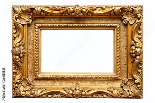 Vintage Golden Antique Picture Frame Border, Blank Space, White Background, Long Exposure Photography