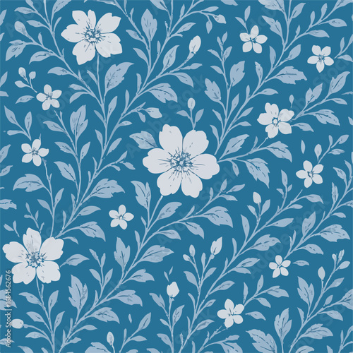 flower, seamless pattern, floral, tree branch, pattern, background, texture, textile, wallpaper, vintage, hand-drawn, bloom, blossom, leaf, plant, nature, botanical, design, illustration, repeat, wrapping paper, fabric, print, ornament, decorative, spring, summer, elegant, artistic, classic, retro, indigo, blue, graphic, art, drawing, motif, element, decoration, scrapbooking, tile