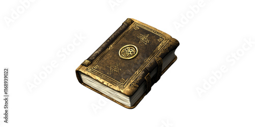 three-dimensional, book, leather, vintage, embossed, cover, story, object, isolated, background, transparent, decor, antique, cultural, historical, accessory, design, retro, literary, library, decoration, writing, history, three-dimensional