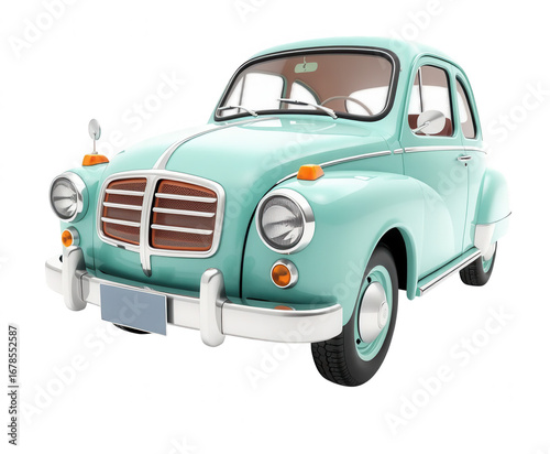 Vintage Light Blue Classic Car Isolated on White Background with Retro Design and Chrome Details