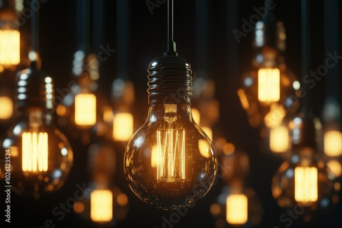 Vintage Light Bulbs Hanging in Dark Background