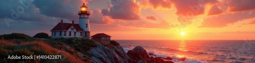 Vintage Lighthouse at sunset, lighthouse, nautical, horizon
