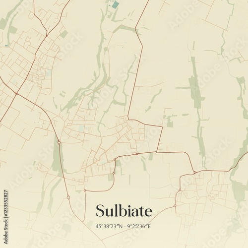 Vintage map of Sulbiate, Italy.