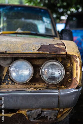 car, auto, automobile, headlamp, vintage, antique, vehicle, classic, bumper, truck, retro, blue, transportation, light, old, abandoned, rust, metal, car, aged, rusted, broken, style, route, show, forgotten, wreck, transport, nostalgia, closeup, steel, background, rust-eaten, sky, automotive, lamp, grill, green, wheel