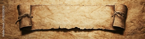 Vintage Parchment Scroll: A weathered parchment scroll, bearing the marks of time, rests on a similar textured surface, hinting at a story or message of great importance, ready for your custom text.