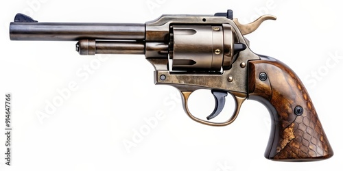 Vintage revolver isolated on white background, gun, firearm, weapon, antique, old, metal, handle, trigger, pistol, vintage