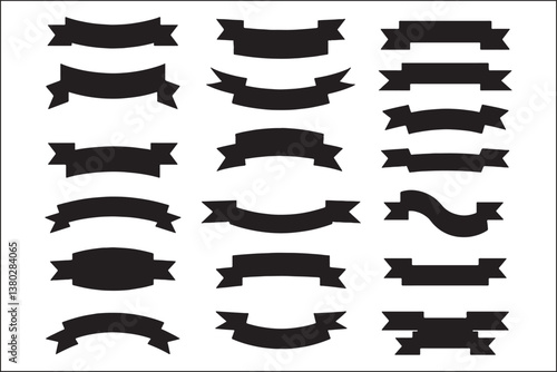 Vintage Ribbon Banner Set – Classic Vector Silhouette Pack Retro Ribbon Vector – Decorative Banner Silhouette Collection Elegant Ribbon Banners – Vintage Scroll & Label Vector Set Hand-Drawn Ribbon