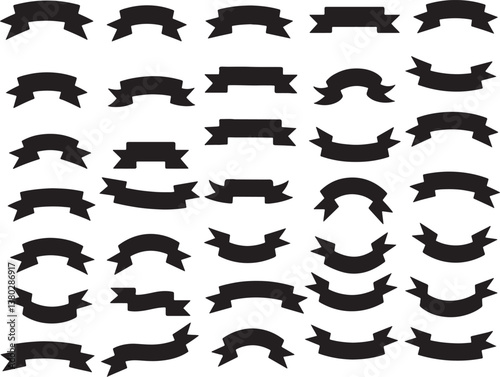 Vintage Ribbon Banner Set – Classic Vector Silhouette Pack Retro Ribbon Vector – Decorative Banner Silhouette Collection Elegant Ribbon Banners – Vintage Scroll & Label Vector Set Hand-Drawn Ribbon
