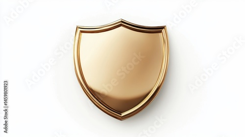 Vintage round golden shield featuring a smooth, reflective surface and elegant finish Isolated on white background