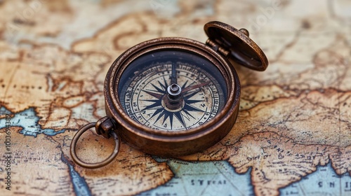 Vintage Rusty Compass on Antique Map Background