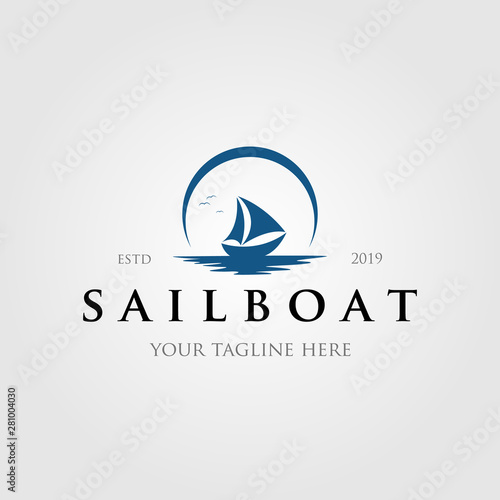 vintage sailboat logo with sun or moon logo