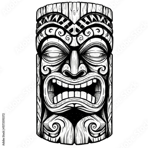 tiki, mask, illustration, tribal, wood, ancient, carving, culture, sculpture, symbol, ethnic, traditional, face, totem, art, design, vintage, tropical, hawaii, maori, pattern, icon, cartoon, artifact, spiritual, amulet, religion, drawing, clip art, style, black, white, element, decoration, signs, character, indigenous, artwork, historic, pacific, representation, ritual, silhouette, isolated, stencil, outline, vector, background, transparent
