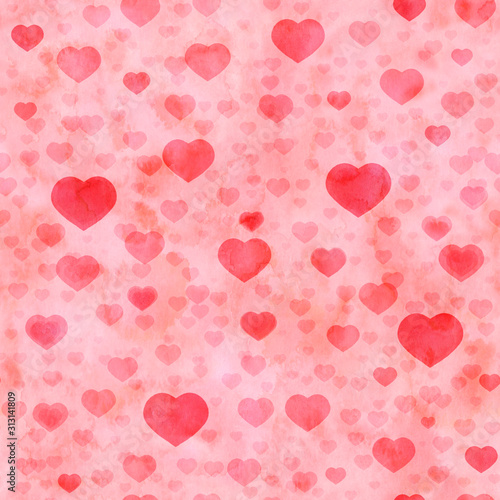 Vintage wtercolor pink hearts background. Seamless pattern. Watercolor illustration. Valentine's Day. Declaration of love.