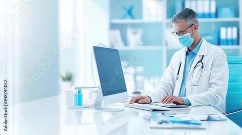 Virtual health consultation with a doctor on a desktop computer, Telemedicine, online medical service