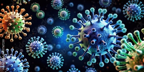 Virus and bacteria under microscope on a black background, render, virus, bacteria, microscope, black background