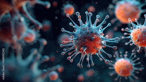Virus attack, microscopic cells with sharp spikes, 3D illustration.