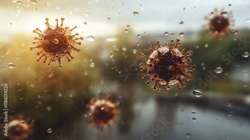 virus, droplet, water, evening, nature, microscopic, viral, structure, environment, science, biology, health, infection, background, disease, sunlight, isolation, microbiology, pandemic, transmission, atmospheric, observation, study, life, ecology, crisis, contamination, research, visualisation, surreal, texture, fiction, condition, danger, load, aquatic, wildlife, landscape, autumn, generative, ai