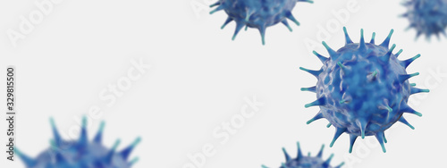 Viruses such as SARS, coronavirus, and COVID-19 that cause respiratory infections, flu, and common colds. Virus abstract background, 3d rendering image with copy space.