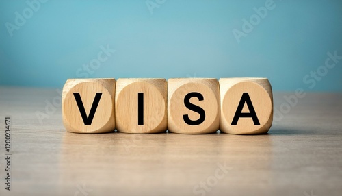 入国審査書類の査証を意味する英単語VISAの文字が書かれたキューブブロック。 aiで生成