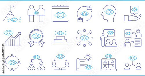 Vision line icons set. Business, teamwork related vector editable stroke.
