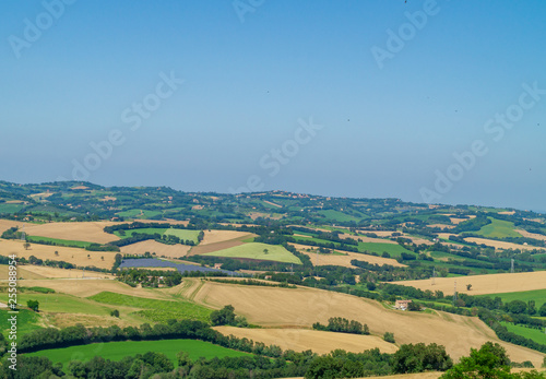view, hill, hill, countryside, heaven, field, countryside, nature, view, green, view, mountain, vale, panoramic, rural, farming, meadow, grass, blue, summer, tree, italy, europa
