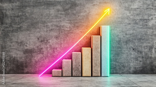 Visual representation of growth with vibrant neon colors and ascending bars