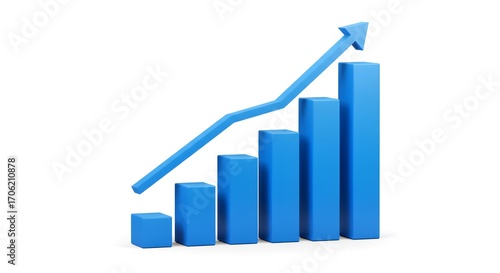 Visual representation of upward trend, growth and success, ideal for business and financial concepts. The bar chart graph with an upward-sloping arrow.