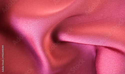 Viva Magenta toned red magenta fabric atlas. Close up pink silk satin texture for sewing. Abstract background wallpaper. Twisted folds cloth.