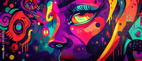 Vivid Abstract Graffiti Artwork Depicting a Colorful Woman's Face