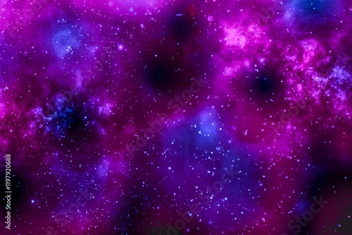 Vivid purple and blue galaxy with colorful star clusters and nebula clouds