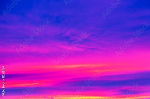 Vivid saturated beautiful sunset sky in pink, purple and blue colors. Sunset background