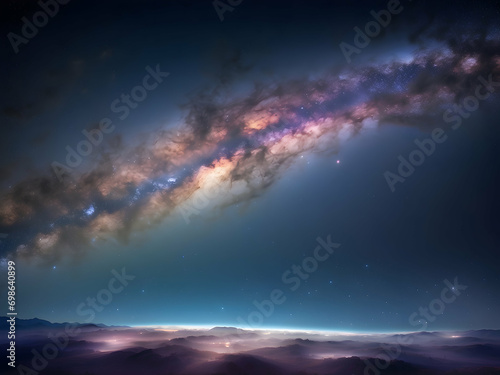 Vivid Sky Over a Blue Planet with Stars and Clouds