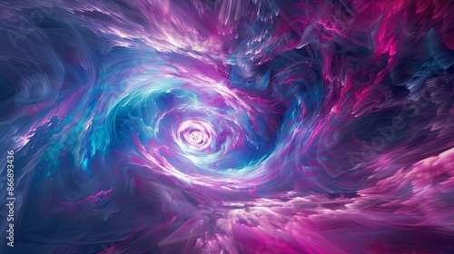 Vivid, swirling clouds in pink, blue and purple. Abstract digital art of a nebula, galaxy or magical portal background.