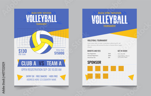 Volleyball championship flyer layout, double sided poster design for Volleyball tournament, vector illustration eps 10