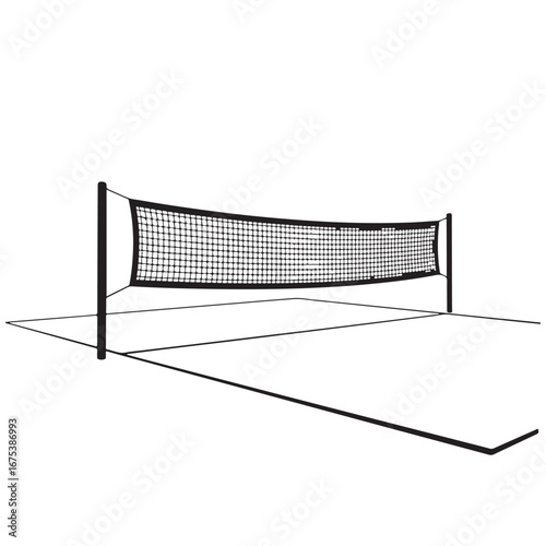 net, court, volleyball, sport, game, line, play, activity, competition, recreation, equipment, field, arena, indoor, black, white, graphic, illustration, vector, design, symbol, icon, outline, drawing, object, structure, boundary, perspective, empty, isolated, background, clean, simple, minimal, geometric, grid, post, pole, support, match, team, ball, action, movement, training, practice, tournament, event