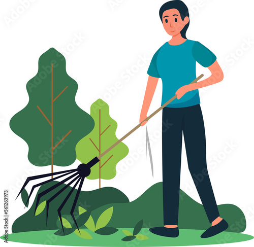 volunteer woman cleaning up the pack, garbage Collector illustration