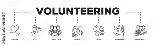 Volunteering icon infographic illustration concept with icon of charity, help, together, support, unity, donation, and community icon png and easy to edit