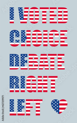 Vote, US Flag, Vector illustration, Stars and stripes, Sticker set, Design elements, Heart, 4th of July, Debate