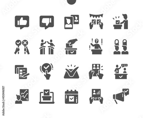 Voting. Positive and negative vote. Candidate. Election day. Politics and debate. Online voting. Vector Solid Icons. Simple Pictogram