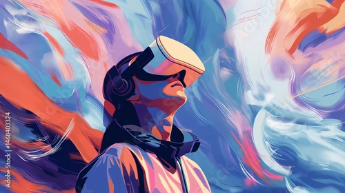 virtual, reality, technology, futuristic, digital, art, abstract, colourful, person, headset, life events, imagination, innovation, modern, artistic, high-coloured, brushstroke, swirl, exploration, future, graphic, visualisation, design, stylish, inspiration, creativity, painting, concept, trendy, illustration