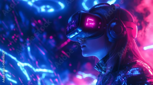 woman, technology, digital, neon, game, innovation, futuristic, virtual, reality, cyberspace, entertainment, background, person, space, cyber, future, simulation, headset, device, tech, female, girl, modern, visual, connection, gaming, goggles, communication, network, connect, concept, global, vision, science, video, interactive, contraption, online, play, lifestyle