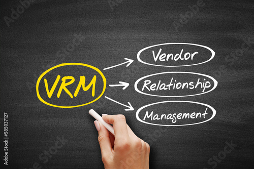 VRM acronym Vendor relationship management, business concept on blackboard.