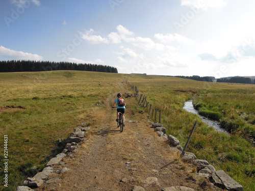 mountain bike, woman, dynamic, aveyron, hike, path, gr, nature, helmet, adventure, france, mountain, tour tourism, green, auvergne