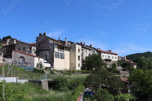 Vue générale du village de Aurec sur Loire le long du fleuve la Loire, département Haute Loire, France